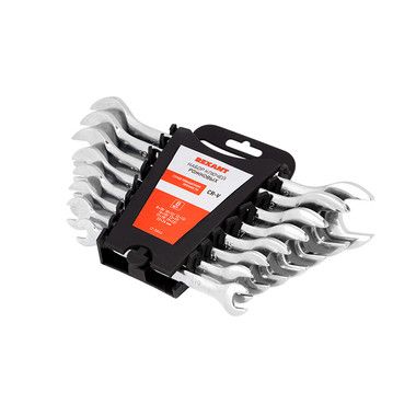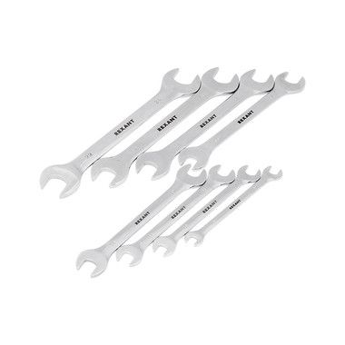 Набор рожковых гаечных ключей REXANT предназначен для монтажа и демонтажа резьбовых соединений: болтов, гаек, муфт и т. д. Хромованадиевый сплав, из которого изготовлены ключи, обладает такими свойствами, как прочность, жесткость, устойчивость к износу. Во время прокаливания он менее подвержен деформациям и потере первоначальной формы, чем другие типы инструментальной стали. Хромовое покрытие защищает рожковые ключи от образования ржавчины, продлевает их срок службы. Инструменты просты в обращении и обеспечивают доступ к любому крепежу. Гаечные ключи применяются в быту, слесарных мастерских и на производстве. Набор поставляется в пластиковом футляре для удобного хранения и транспортировки.