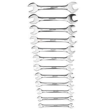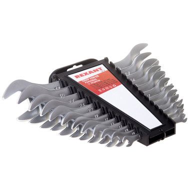 Набор рожковых гаечных ключей REXANT предназначен для монтажа и демонтажа резьбовых соединений: болтов, гаек, муфт и т. д. Хромованадиевый сплав, из которого изготовлены ключи, обладает такими свойствами, как прочность, жесткость, устойчивость к износу. Во время прокаливания он менее подвержен деформациям и потере первоначальной формы, чем другие типы инструментальной стали. Хромовое покрытие защищает рожковые ключи от образования ржавчины, продлевает их срок службы. Инструменты просты в обращении и обеспечивают доступ к любому крепежу. Гаечные ключи применяются в быту, слесарных мастерских и на производстве. Набор поставляется в пластиковом футляре для удобного хранения и транспортировки.