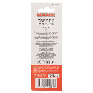 Сверло по стеклу и кафелю REXANT предназначено для обработки кафеля, стекла и керамики. Оно имеет цилиндрическое тело и копьеобразную режущую часть, выполненную из твердого сплава. Сверло используется совместно с дрелями на низких оборотах.