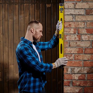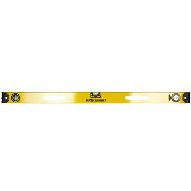 Измерительный уровень алюминиевый PROconnect «Рельс» используется для выверки отклонений горизонтальных и вертикальных поверхностей, измерения градуса отклонения поверхности от горизонтальной плоскости. Инструмент является незаменимым при выполнении строительно-монтажных работ, таких как выравнивание стен или пола; установка дверей и окон; укладка кирпича и плитки; оклеивание стен обоями; монтаж натяжных потолков; установка перегородок и др. Уровень изготовлен из жесткого двухтаврового алюминиевого профиля. Модель имеет 3 пузырьковых глазка: 2 статичных для проверки отклонений по горизонтали и вертикали, 1 поворотный для выставления произвольных углов. На одной из сторон уровня нанесена разметка для использования инструмента в качестве линейки. Пластиковые заглушки на торцах защищают конструкцию при случайных падениях.