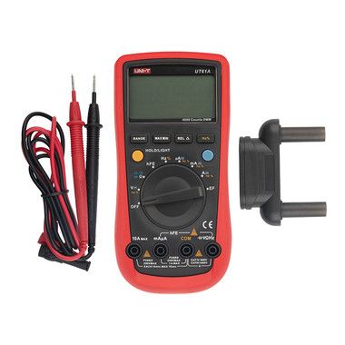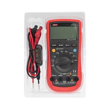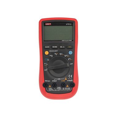 UT61A — это профессиональный мультиметр с современным и эргономичным дизайном. Предназначен прибор для измерений постоянного и переменного напряжения, сопротивления, постоянного и переменного тока. Кроме того, он имеет функции измерения электрической емкости и частоты, а также с его помощью вы сможете тестировать диоды и проводить прозвонку целостности цепи. Еще одной отличительной особенностью данного прибора является функция генерирования прямоугольных сигналов (меандр), эта функция нужна для измерений и преобразований сигнала и в других областях. Данный прибор обладает высоким классом точности показаний.