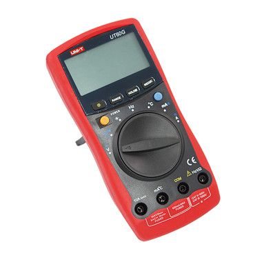 UT60G- это профессиональный мультиметр с современный и эргономичным дизайном. Предназначен прибор, для измерений постоянного и переменного напряжения, сопротивления, постоянного и переменного тока. Кроме того он имеет функции измерения электрической емкости, температуры и частоты, а так же с его помощью вы сможете тестировать диоды, батарейки и проводить прозвонку целостности цепи. Данный прибор обладает высоким классом точности показаний. Дисплей прибора оснащен подсветкой, которая позволяет проводить измерения даже в слабоосвещенных местах. Широкий функционал мультиметра UT60G позволяет обходиться без других вспомогательных устройств. Прибор оснащен функцией Data hold, и зафиксировав результат измерений, вы в любое время сможете считать полученный значение. Прибор изготовлен из высококачественных материалов. Калибровка и тестирование приборов произведено под контролем компании REXANT INTERNATIONAL. Инженеры старались сделать прибор максимально удобным для использования, и сужение в нижней области корпуса позволяет удобнее располагать прибор в одной руке, а шероховатость корпуса предотвращает выскальзывание. UT60G имеет функцию автоматического выбора пределов измерений. В отличие от устаревших моделей, где вам приходилось вручную выставлять пределы, сейчас же нужно всего лишь выбрать какой из параметров вы собираетесь измерять. Кроме того у прибора усиленный переключатель, благодаря которому исключается возможность случайного нажатия. Мультиметр имеет разъем для подключения к ПК что делает возможным проводить мониторинг и анализ полученных результатов.