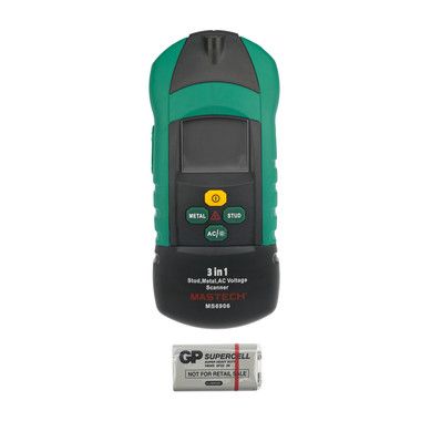MASTECH MS 6906 — это многофункциональный прибор, включающий в себя большой набор возможностей. Предназначен для поиска металла, переменного напряжения, а также скрытых конструкций. С его помощью вы сможете обнаружить винты, гвозди, саморезы, шпильки, иголки и другие металлические предметы на глубине до 30 мм, металлические трубы на глубине до 60 мм и напряжение на глубине до 75 мм. Результаты поиска отражаются на дисплее прибора и обозначаются с помощью звукового сигнала.