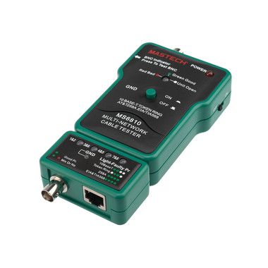 MASTECH MS6810 — многофункциональный сетевой тестер кабеля может использоваться для проверки коаксиальных кабелей (BNC), неэкранированных кабелей типа «витая пара» (UTP), экранированных кабелей типа «витая пара» (STP). Автоматически проверяет наличие обрывов, коротких замыканий, перестановки и реверса пар.