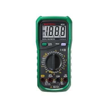Мульти́метр — электроизмерительный прибор, который включает в себя несколько функций и набор измеряемых параметров. Прибор MY63N относится к обновленной серии N, что отразилось на внешнем и внутреннем дизайне, ряде параметров и улучшенной схемотехнике, добавлена функция памяти данных на экране.. Все приборы серии MY измеряют постоянное и переменное напряжение, постоянный и переменный ток, сопротивление в цепи, емкость, частоту, проверить транзисторы. А также, с помощью прибора MY63N можно проводить тестирование диодов, прозвонку целостности цепи и измерение коэффициента усиления транзисторов.