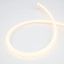 Гибкий неон – световой шнур, выполненный из матовой тепло-белой ПВХ трубки с токопроводящими жилами и светодиодами внутри. Используется для декоративной и архитектурной подсветки объектов, также широко распространен в украшении интерьера. Шнур имеет два токопроводящих провода внутри и используется в режиме постоянного свечения. Данный вид гибкого неона имеет угол свечения 360 градусов благодаря равномерному расположению светодиодов внутри ПВХ-трубки. Гибкий неон поставляется в бухтах длиной 50 м, имеет модуль резки 1 метр. Следуя несложной инструкции легко можно отрезать и подключить гибкий неон нужной длины. Температурный диапазон использования -25…+40 °С, монтаж необходимо производить при температуре -20…+40 °С. Допустимый диаметр изгиба составляет 3 см.