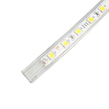 Светодиодная лента 220 В повышенной яркости представляет собой гибкую PCB панель, напоминающую тончайшую ленту, на которую нанесены светодиоды SMD5050. PCB панель со всех сторон обволакивает прозрачная герметичная изоляция, благодаря которой лента защищена от механических повреждений и может работать находясь под тяжелым воздействием окружающей среды.