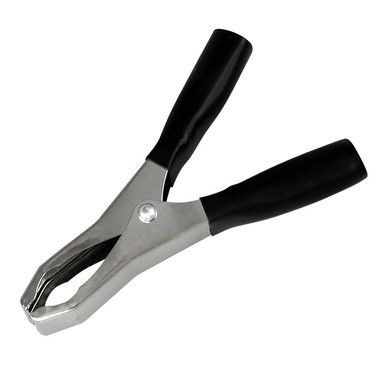 Зажим "крокодил" 50А 98мм REXANT представляет собой электромеханическое устройство, предназначенное для оперативного соединения или разъединения контакта проводов при выполнении измерительных работ или монтажа электрических и слаботочных сетей. Зажим получил свое название за схожесть с челюстями крокодила. Состоит он из двух фигурных деталей с «крокодильими» зубцами, скрепленных серединами специальным штифтом и способных поворачиваться на некоторый угол вокруг оси соединения. К одной из деталей монтируется контактный провод. Сжатие «челюстей» обеспечивается пружиной, вставленной с другой стороны штифта. Контактная часть изделия изготавливается из стали с никелированным покрытием. В целях безопасной эксплуатации зажима, ручки имеют изоляцию, изготовленную из ПВХ, что предохранит от поражения специалиста электрическим током. Чаще всего зажимы применяются парами черного и красного цвета (50/50). Основные характеристики: