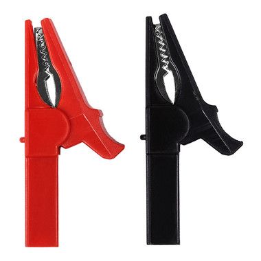 Зажим "крокодил" для тестера REXANT представляет собой электромеханическое устройство, предназначенное для оперативного соединения или разъединения контакта проводов при выполнении измерительных работ или монтажа электрических и слаботочных сетей. Зажим получил свое название за схожесть с челюстями крокодила. Состоит он из двух фигурных деталей с «крокодильими» зубцами, скрепленных серединами специальным штифтом и способных поворачиваться на некоторый угол вокруг оси соединения. К одной из деталей через гнездо разъёма "банан" (banana) диаметром 4 мм монтируется контактный провод, оснащенный соответствующим штекером. Данный вид разъёма является одним из самых популярных соединителей в электротехнике, подходит к большинству мультиметров. Сжатие «челюстей» обеспечивается пружиной, вставленной с другой стороны штифта. Контактная часть изделия изготавливается из стали с никелированным покрытием. В целях безопасной эксплуатации зажим имеет изоляцию, изготовленную из ПВХ, что предохранит от поражения специалиста электрическим током. Чаще всего зажимы применяются парами черного и красного цвета (50/50).