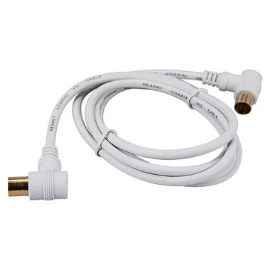 Шнур TV PLUG - TV JACK 1.5 м угловой белый REXANT предназначен для передачи аналоговых аудио- и видеосигнала телевизионной сети к телевизору при подключении к телевизионной розетке, для подключения различного телекоммуникационного оборудования (ресиверы, ТВ-приставки и т. д.). Его также можно используют в качестве удлинителя высокочастотного кабеля для передачи ТВ сигнала от телевизионной антенны. C одной стороны шнура располагается угловой штекер TV разъема, с другой — угловое гнездо TV разъема.