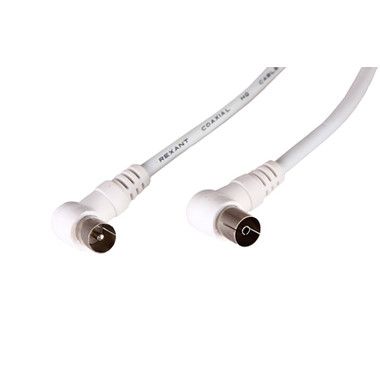 Шнур TV PLUG - TV JACK 5 м угловой белый REXANT предназначен для передачи аналоговых аудио- и видеосигнала телевизионной сети к телевизору при подключении к телевизионной розетке, для подключения различного телекоммуникационного оборудования (ресиверы, ТВ-приставки и т. д.). Его также можно используют в качестве удлинителя высокочастотного кабеля для передачи ТВ сигнала от телевизионной антенны. C одной стороны шнура располагается угловой штекер TV разъема, с другой — угловое гнездо TV разъема.