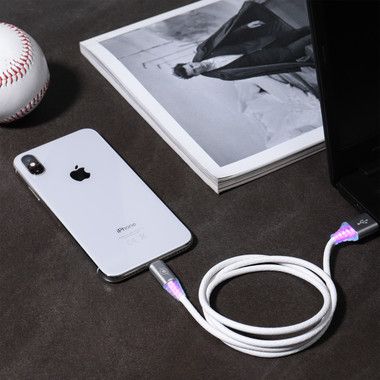 Данный кабель отличает ультрасовременный материал оплетки — синтетический полимер soft touch (бархатистый на ощупь) с печатным рисунком — змеиная кожа и подсвечивающиеся разъемы.