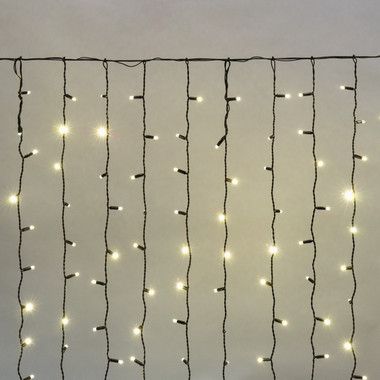 Светодиодная гирлянда Занавес (Дождь) представляет собой гибкий горизонтальный шнур-шину 2 м, к которому через определенные промежутки крепятся 20 вертикальных нитей равной длины со светодиодами.