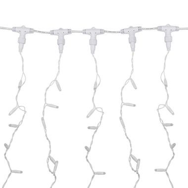 Светодиодная гирлянда Занавес (Дождь) представляет собой гибкий горизонтальный шнур-шину 2 м, к которому через определенные промежутки крепятся 16 вертикальных нитей равной длины со светодиодами.