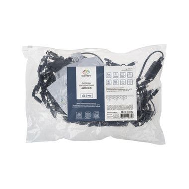 Гирлянда имеет белый цвет свечения и предназначена для использования как внутри помещений, так и снаружи.