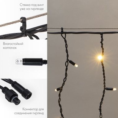 Важной особенностью данного исполнения является каучуковый провод, благодаря которому гирлянда отличается высокой надежностью и может быть использована в условиях российского климата, даже в самых холодных регионах страны!