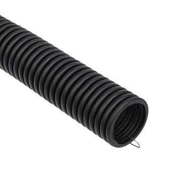 Труба гофрированная из ПНД с зондом, черная Ø 25 мм (бухта 50 м/уп.) REXANT из полиэтилена низкого давления отлично подходит для защиты изолированных проводов и кабелей от механических повреждений и агрессивного воздействия окружающей среды при прокладке сложных систем и трасс. Применяется для скрытой и открытой прокладки в несущих и ограждающих конструкциях из несгораемых материалов жилых, административных и производственных зданий и сооружений.