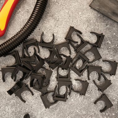 Крепеж-клипса применяется для крепления гофрированных и гладких труб к различным поверхностям. Имеет технологическое отверстие для саморезов/дюбелей.