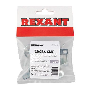 Крепежная двухлапковая скоба СМД 21-22 REXANT предназначена для крепления металлорукавов, стальных и полимерных труб к несущей поверхности. Скоба позволяет осуществлять крепеж кабельных изделий.