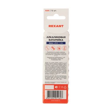 Алкалиновые батарейки AAA/LR03 REXANT — в упаковке 12 шт.