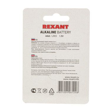 Алкалиновые батарейки AA/LR6 REXANT 4 шт. в блистерной упаковке.