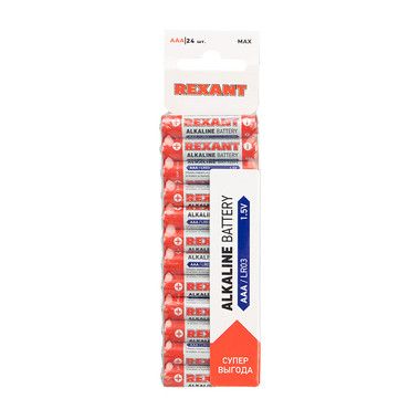 Алкалиновые батарейки AAA/LR03 REXANT в экономичной упаковке 24 шт.