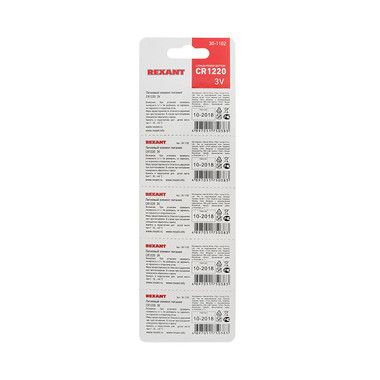 Батарейка REXANT CR1220 предназначена для использования в фотоаппаратах, электронике, системах безопасности (сигнализациях).