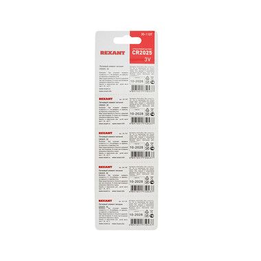 Батарейка REXANT CR2025 предназначена для использования в фотоаппаратах, электронике, системах безопасности (сигнализациях).