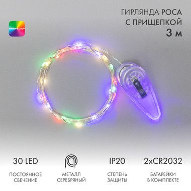 Светодиодная гирлянда «Роса» с прищепкой – прекрасный декоративный элемент, светящийся разноцветными огоньками и создающий атмосферу праздника и уюта.