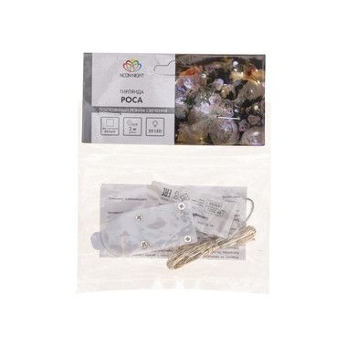 Гирлянда «Роса» длиной 2 метра с 20 безопасными, экономичными светодиодами, которые питаются от двух элементов CR2032. Гирлянда подходит для декорирования любых помещений, включая детские комнаты. Одного комплекта батареек хватает на 48 часов работы. Гирлянда излучает белый свет нейтрального оттенка. Провод с эффектом памяти позволяет создавать сложный декор без дополнительных фиксаторов.