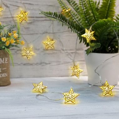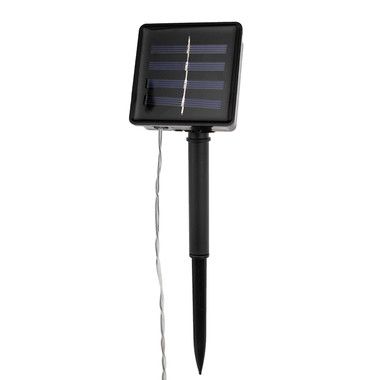 Светодиодная гирлянда «Звезды» питается от солнечной батареи. На проводе, помещенном в прозрачную изоляцию из ПВХ, находятся 12 диодов, которые выполнены в виде ажурных звезд золотистого цвета с глянцевым покрытием. Экономичные безопасные диоды излучают белый свет теплого оттенка. На питающем элементе предусмотрен блок управления с клавишей включения, выключения и смены режима на динамичный — удобное решение, когда гирлянда не используется. Защита IP44 допускает использование на улице.