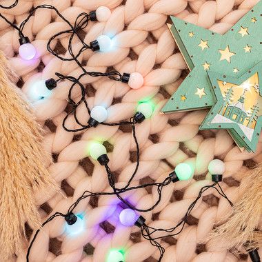 Гирлянда «Мультишарики» длиной 5 метров — эффектный декор, который гармонично украсит интерьер любого стилевого направления и подарит праздничное настроение окружающим. 25 светодиодов RGB помещены в матовые шарики с диаметром 25 мм. Матовый корпус каждого элемента рассеивает яркие лучи, создавая мягкое, приятное для глаз свечение. Гирлянда работает в режиме хаотичной смены цветов — всего 256 разных оттенков. Можно соединить до 6 изделий и получить украшение нужной длины. Для включения в розетку предусмотрен трехметровый питающий шнур с вилкой — удлинитель не потребуется.