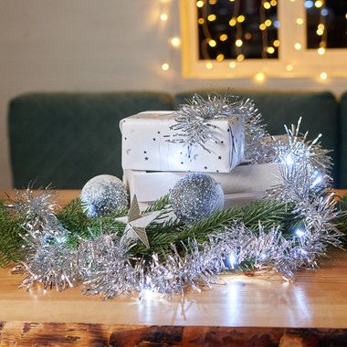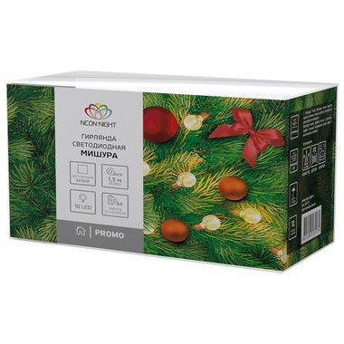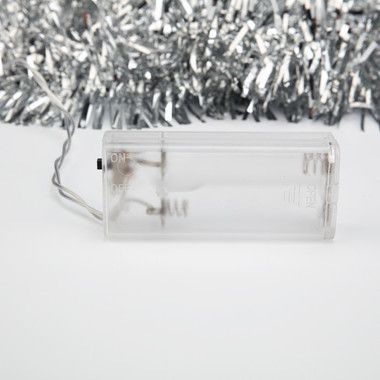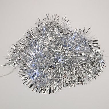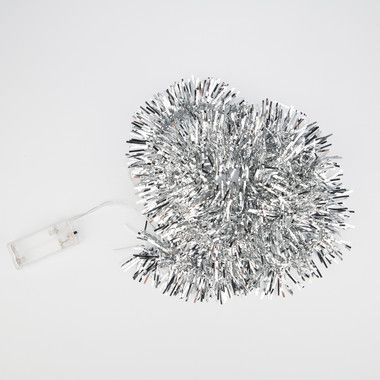 Светодиодная гирлянда «Мишура» длиной 1,6 метра выполнена из серебристого кабеля в изоляционной оболочке из прозрачного ПВХ. Гирлянда выполнена в виде привычной серебристой мишуры и дополнена 10 светодиодами, которые излучают ровный белый свет, питаясь от двух батареек типа АА. Изделие способно создать гармоничный интерьерный акцент даже в выключенном состоянии благодаря эффектному дизайну.