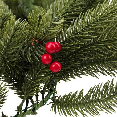 Каждая еловая ветка в гирлянде тщательно выполнена с большим вниманием к деталям, что создает естественный и реалистичный вид хвои. Густота веток и их натуральная форма придают гирлянде объемный и роскошный вид.