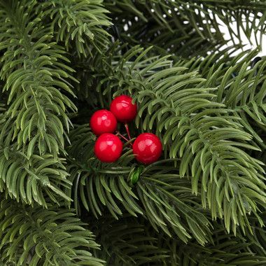 Еловый венок диаметром 45 см с ягодами и гирляндой — современный, эффектный и безопасный декор, который будет украшать ваш дом в Новый год много лет подряд. Изделие выполнено из мягкого, но прочного полимера — иголки не колются и не царапают кожу при прикосновении. Гирлянда со светодиодами красиво подсвечивает композицию, дополненную ярко-красными ягодами остролиста. Декоративный венок питается от 2 батареек типа АА, поэтому не нуждается в подключении к розетке — украшение можно повесить в любом месте.