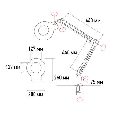3. Удобный пантографический механизм, состоящий из звеньев. Обеспечит хорошую устойчивость и точную фиксацию лупы в пространстве в необходимом положении.