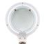 Лупа также имеет регулятор яркости подсветки (диммер), который управляется с помощью кнопок на корпусе. На подставке-основании есть специальные отделения для хранения канцелярских принадлежностей.