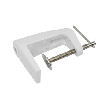 Струбцинное крепление белого цвета для лампы-лупы предназначено для крепления ламп-луп к столу и прочим горизонтальным поверхностям.
