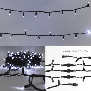 Предусмотрена возможность последовательного подключения гирлянд. Максимальная длина может достигать 300 м. Максимальное количество гирлянд, подключаемых в одну цепь – 15.