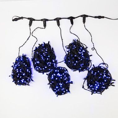 Данная гирлянда состоит из 5 нитей, представлена в синем цвете свечения светодиодов.
