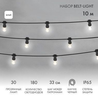 30 лампочек белого свечения, уже установлены в патроны, поэтому изделие полностью готово к использованию. В каждой лампе по 6 светодиодов.