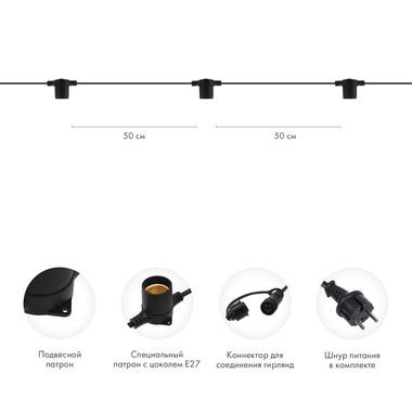 «Белт-Лайт» – популярная гирлянда для украшения фасадов домов, зданий, создания перетяжек между деревьями, столбами. Также такие гирлянды широко используются в украшении кафе, ресторанов, на свадебных площадках и в фотозонах. 10-метровый шнур оснащен 20 патронами с цоколем Е27. Патроны располагаются на иллюминационном кабеле с шагом 50 см. Для подключения к сети предусмотрен 3-метровый шнур с евровилкой. Для удобства использования предусмотрена возможность соединения гирлянды до 4-х комплектов. Провод находится в надежной изоляции из морозостойкого каучука. Вся конструкция защищена от влаги и пыли по стандарту IP44, поэтому предполагается размещение как дома, так и на улице. Гирлянда длиной 10 метров станет прекрасным украшением интерьера или экстерьера.
