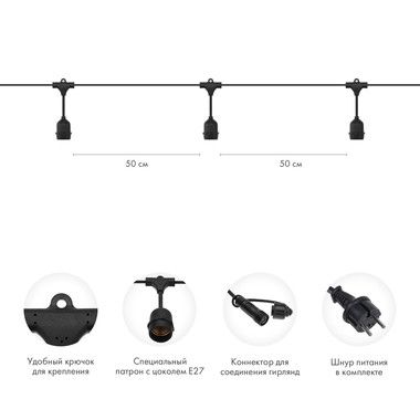 «Белт-Лайт» – популярная гирлянда для украшения фасадов домов, зданий, создания перетяжек между деревьями, столбами. Также такие гирлянды широко используются в украшении кафе, ресторанов, на свадебных площадках и в фотозонах. 20-метровый шнур оснащен 40 подвесными патронами с цоколем Е27. Патроны располагаются на иллюминационном кабеле с шагом 50 см. Для подключения к сети предусмотрен 3-метровый шнур с евровилкой. Для удобства использования предусмотрена возможность соединения гирлянды до 4-х комплектов. Провод находится в надежной изоляции из морозостойкого каучука. Вся конструкция защищена от влаги и пыли по стандарту IP44, поэтому предполагается размещение как дома, так и на улице. Гирлянда длиной 20 метров станет прекрасным украшением интерьера или экстерьера.