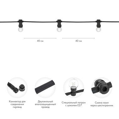 Через каждые 40 см на шине последовательно закреплены патроны, в которые уже установлены LED-лампы.