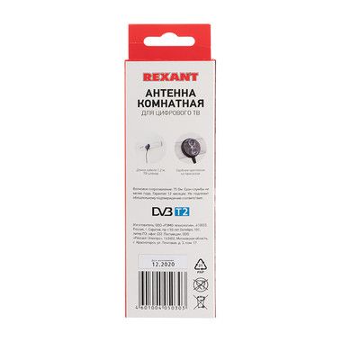 Антенна комнатной установки, предназначена для приема цифрового эфирного ТВ вещания в стандарте DVB-T2.