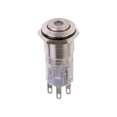 Кнопка антивандальная Ø16 12В Б/Фикс (5с) OFF-(ON)/ON-(OFF) синяя предназначена для коммутации электрических цепей напряжением до 12В путем включения-выключения питающего провода. Металлические кнопки применяются в местах, где существует большой риск их повреждения (на различных производственных линиях, в лифтовых кабинах, около входной двери и т.д.), а также для декоративного оформления панелей управления. Главными отличительными особенностями такой кнопки являются металлическое исполнение и неуязвимость контактной группы, что обеспечит ей долговечное функционирование. Изделие состоит из двух основных частей - лицевой части (головки) и контактной, и имеет пружинный возвратный механизм. Монтаж осуществляется без применения винтов на плоских панелях толщиной от 0.5мм до 10мм. Подключение проводов осуществляется с помощью винтовых зажимов, пайки или разъемом.