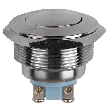 Кнопка антивандальная Ø25 Б/Фикс (ON)-OFF сфера REXANT предназначена для коммутации электрических цепей переменного тока напряжением до 250В путем включения-выключения питающего провода. Такие кнопки применяются в местах, где существует большой риск их повреждения (на различных производственных линиях, в лифтовых кабинах, около входной двери и т.д.). Главными отличительными особенностями антивандальной кнопки являются металлическое исполнение и неуязвимость контактной группы, что обеспечит ей долговечное функционирование. Изделие состоит из двух основных частей - лицевой части (головки) и контактной, и имеет пружинный возвратный механизм. Монтаж осуществляется без применения винтов на плоских панелях толщиной от 0.5мм до 10мм. Подключение проводов осуществляется с помощью винтовых зажимов.