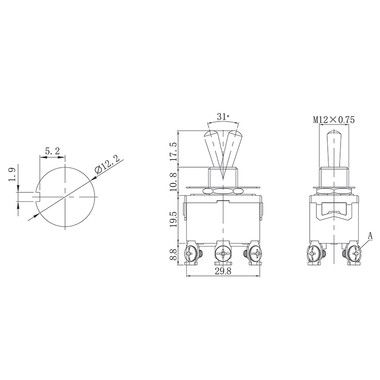 Тумблер 250V 15А (6c) ON-OFF-ON двухполюсный предназначен для коммутации электрических цепей переменного тока напряжением до 250В. Такая разновидность переключателей применяется на лицевых панелях в качестве комплектующих изделий различного электрооборудования (в измерительных приборах, блоках питания, электроустановках на различных производствах, легковых и грузовых автомобилях, поездах и многих других местах). Отличительной особенностью тумблера является перекидной переключатель, принцип действия которого основан на его перемещении в одну из позиций. Для переключения в нужное положение требуется приложить некоторые усилия. Монтаж осуществляется без применения винтов на плоских панелях толщиной от 0.8мм до 4мм. Подключение контактов осуществляется с помощью винтов.
