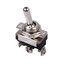 Тумблер 250V 10А (3c) ON-OFF-ON однополюсный Mini предназначен для коммутации электрических цепей переменного тока напряжением до 250В. Такая разновидность переключателей применяется на лицевых панелях в качестве комплектующих изделий различного электрооборудования (в измерительных приборах, блоках питания, электроустановках на различных производствах, легковых и грузовых автомобилях, поездах и многих других местах). Отличительной особенностью тумблера является перекидной переключатель, принцип действия которого основан на его перемещении в одну из позиций. Для переключения в нужное положение требуется приложить некоторые усилия. Монтаж осуществляется без применения винтов на плоских панелях толщиной от 0.8мм до 4мм. Подключение контактов осуществляется с помощью винтов.
