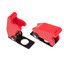 Защитная крышка для тумблеров типа KN и ASW красная предназначена для защиты от случайной коммутации переключателя во включенное положение. Устанавливается без применения дополнительного крепежа совместно с тумблерами типа KN или ASW на лицевых панелях управления электрооборудованием (в измерительных приборах, блоках питания, электроустановках на различных производствах, легковых и грузовых автомобилях, поездах и многих других местах). Защита тумблера состоит из двух основных частей, соединенных пружинным механизмом: металлической пластины с круглым отверстием (Ø12мм) для установки на переключатель и пластмассовой крышки. Пружинный механизм удерживает крышку в закрытом, либо открытом положении. Для переключения в открытое положение требуется приложить некоторые усилия. Разнообразные цветовые варианты исполнения защитной крышки позволяют эффективно комплектовать панели управления.